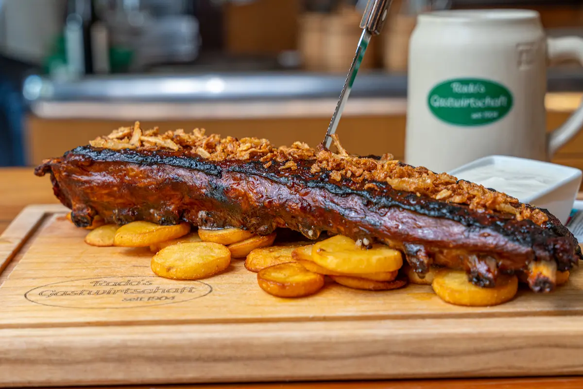 Das Rezept unserer Spareribs bleibt im Besitz der Familie Rado. Unsere Gäste erfreuen sich jedes Mal wieder über die „Spezialität des Hauses“. Angefangen bei der hausgemachten Marinade bis zum saftigen Fleisch welches sich herrlich vom Knochen löst.